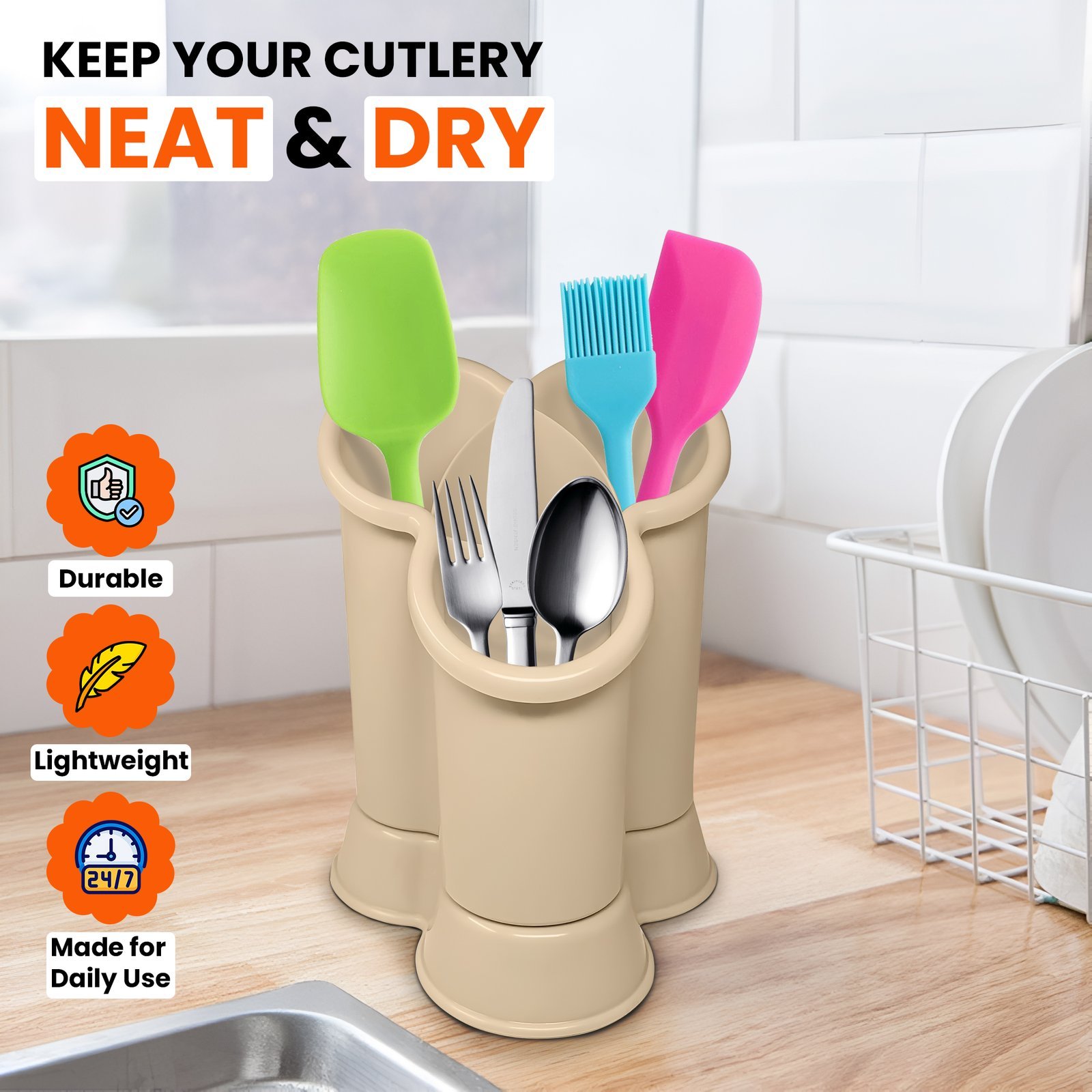 4-Compartment High-Grade Plastic Sink Tidy Cutlery Drainer – Taupe (Design 2)