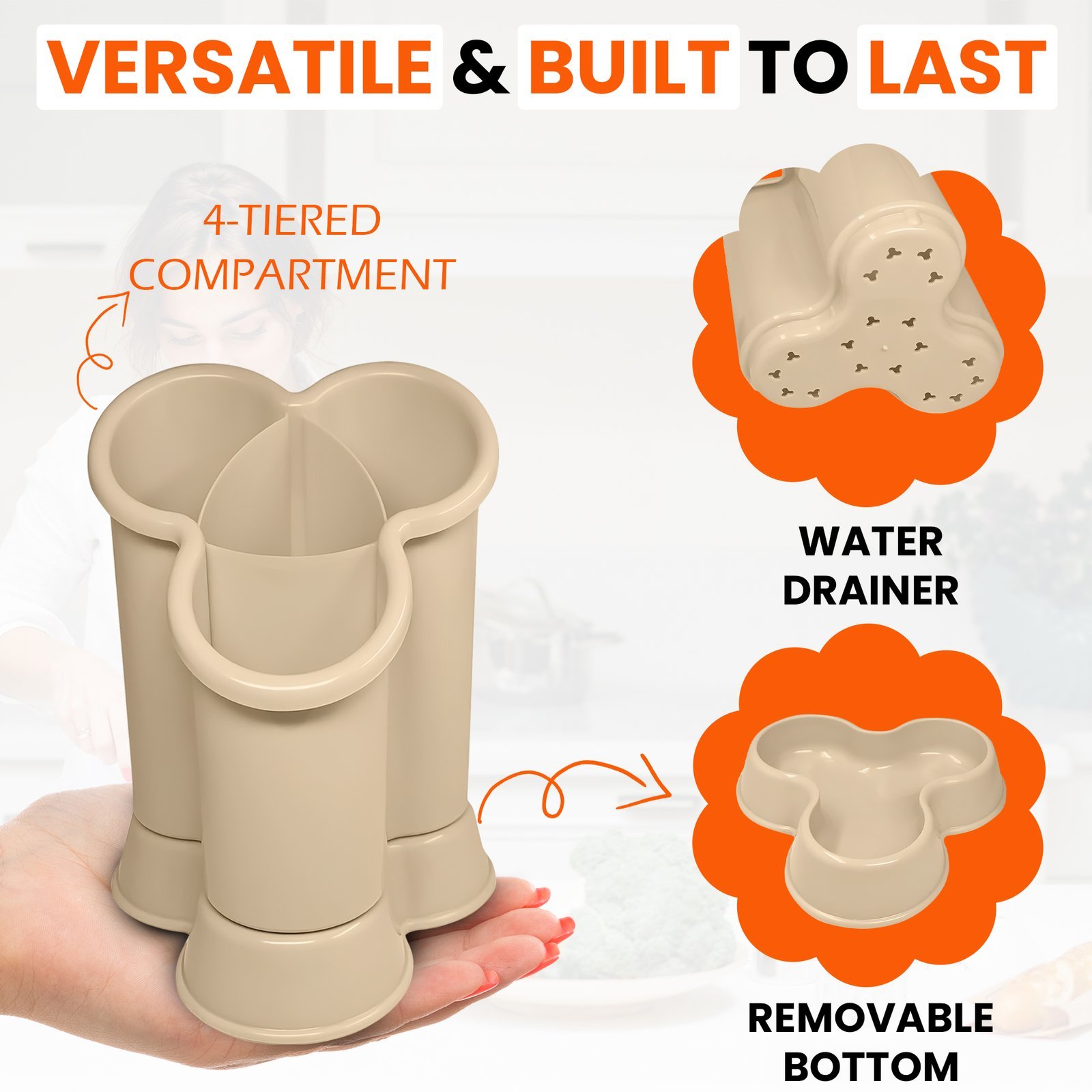 4 Spacious Compartments – Separate and organize knives, forks, spoons, and kitchen tools with ease.