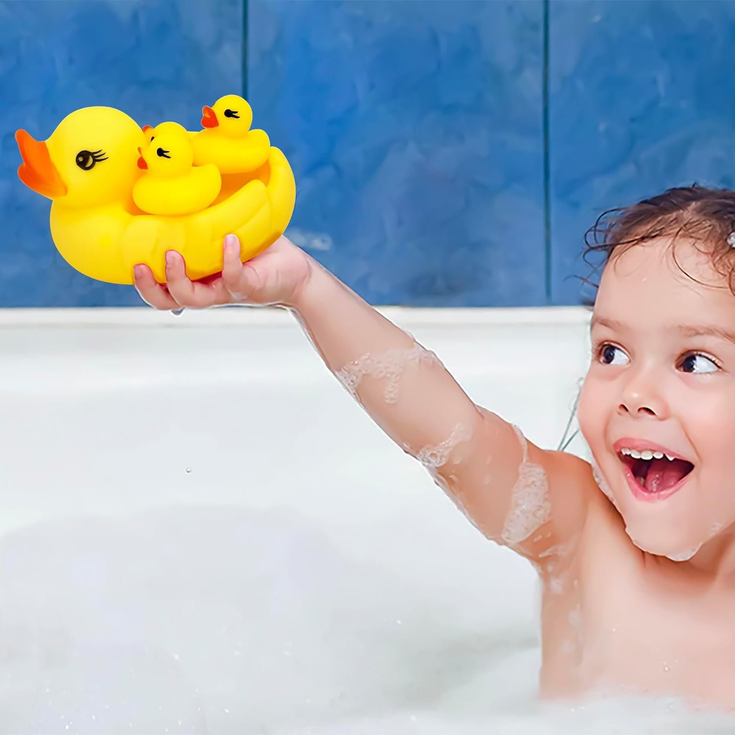 4Pcs Rubber Duck Family Set, Floating Bathtub Pool Toys for Toddlers, Fun Time Bath Toys, Soft Rubber Ducks with Beep Sound, Stocking Fillers, Kids Summer Toys 36+ Months