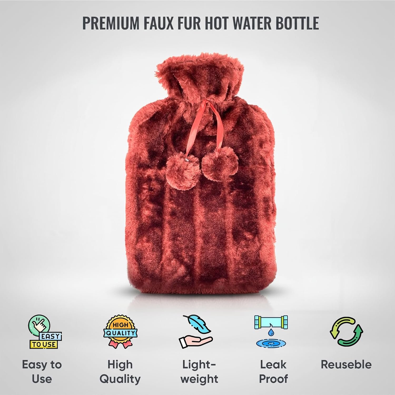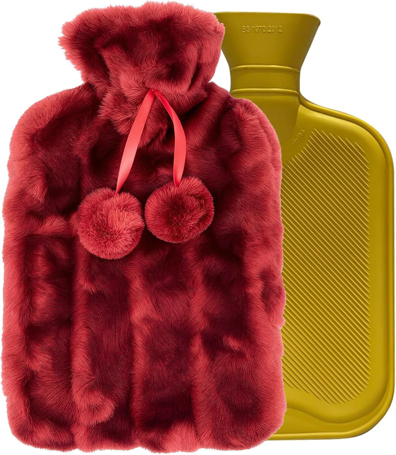 - LONG-LASTING HEAT & SOOTHING PAIN RELIEF: This 2 litre hot water bottle is designed to deliver consistent and long-lasting warmth, helping to ease muscle aches, back pain, cramps, joint stiffness, and general body discomfort. The premium rubber bottle safely retains heat for extended periods, while the thick faux fur cover gently distributes warmth without causing direct heat discomfort, making it ideal for pain relief, relaxation, and everyday comfort during cold weather.