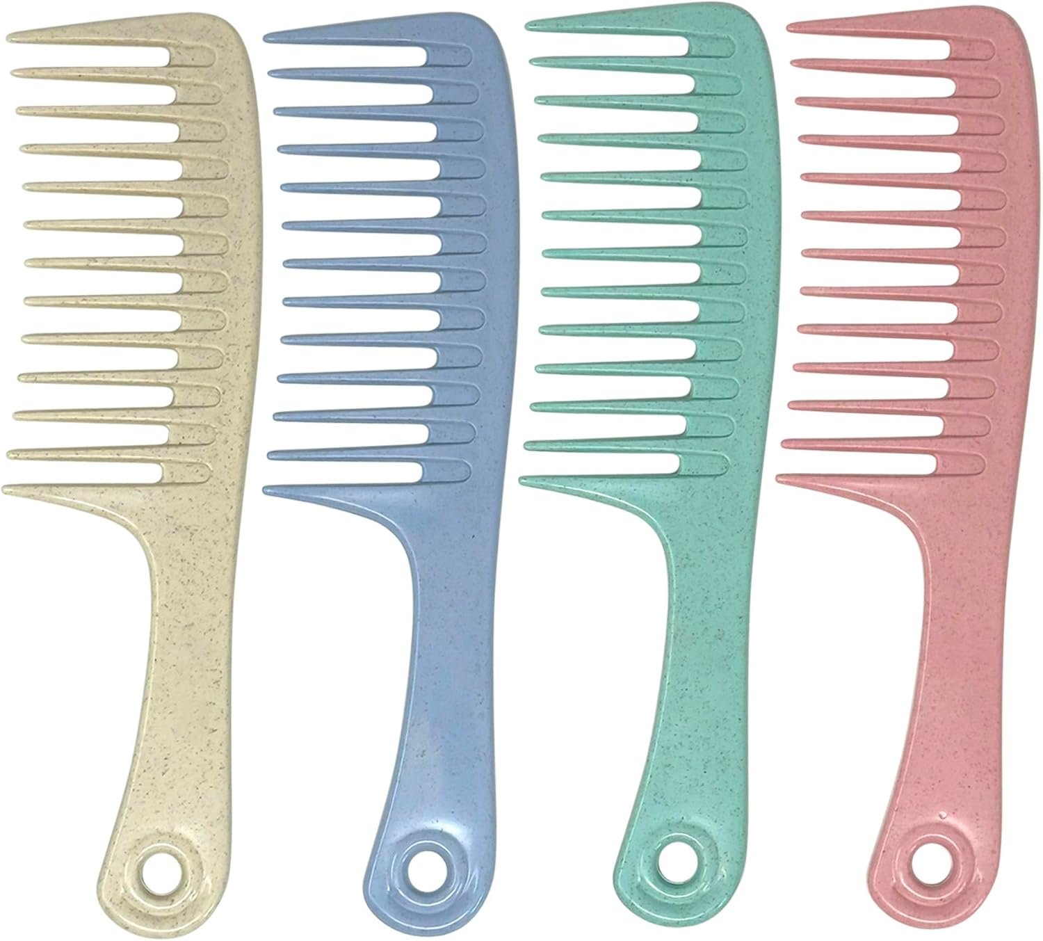 Pack of 4 Wide Tooth Hair Comb Set, Detangling Comb with Handle Hole for Easy Hanging, Durable Plastic Combs for Men and Women, Pastel Colors for Smooth, Frizz-Free Styling