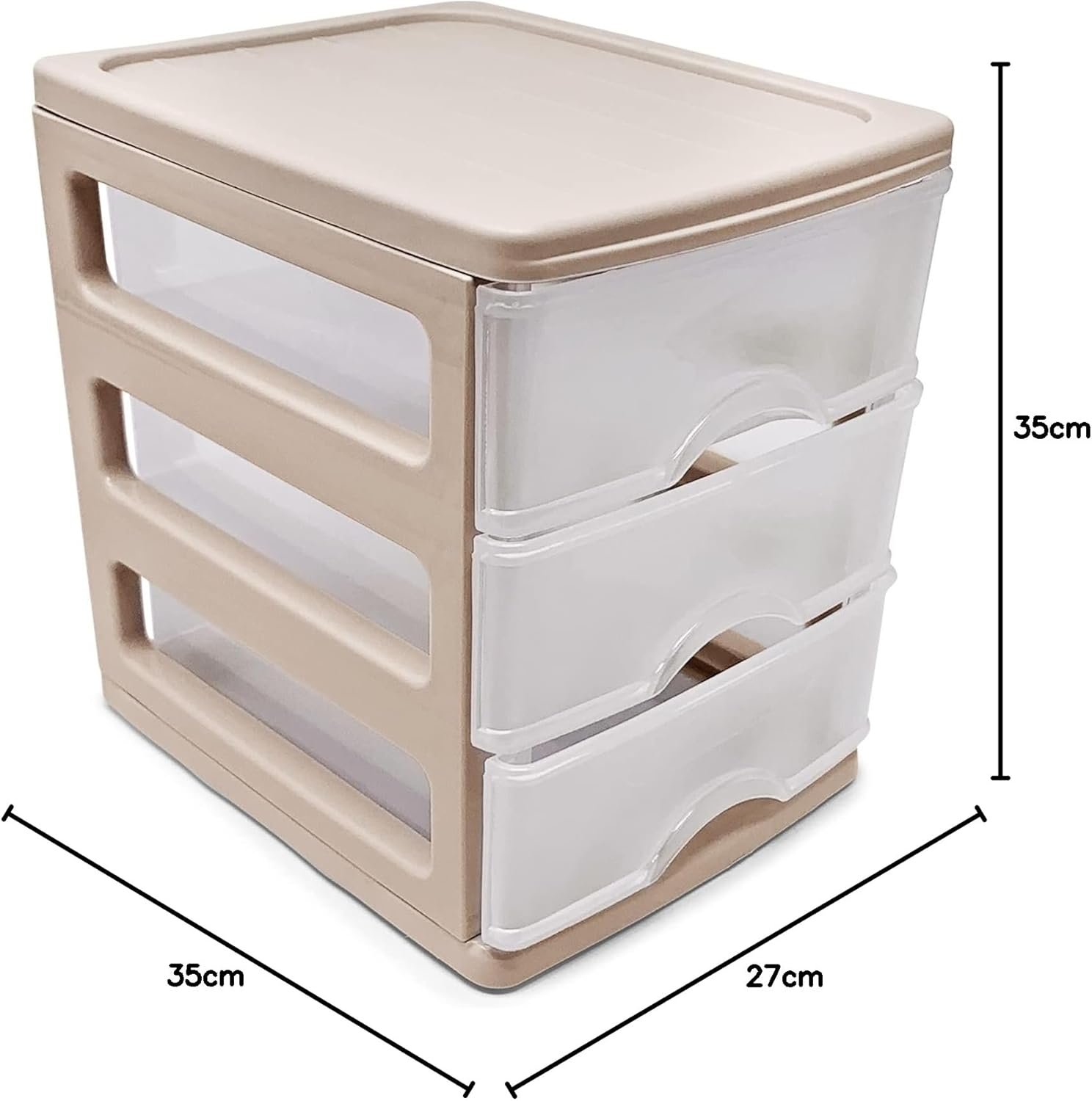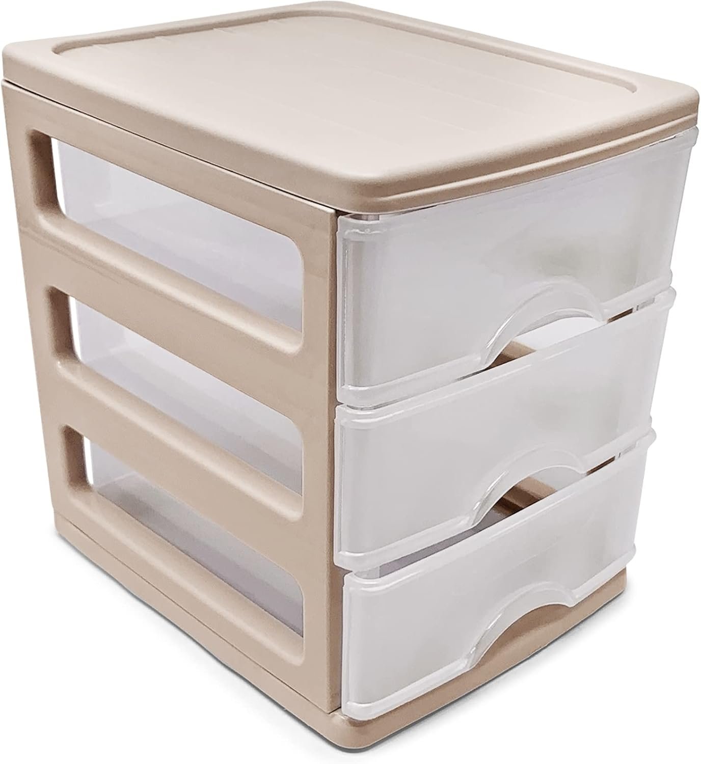 Plastic Desktop Storage Unit with Drawers, Stationary Arts Drawer Desktop Tabletop Organiser Storage Tower Unit for Office Bedroom Garage ((17 x 13.5 x 17cm, Taupe with 3 Clear Drawers))