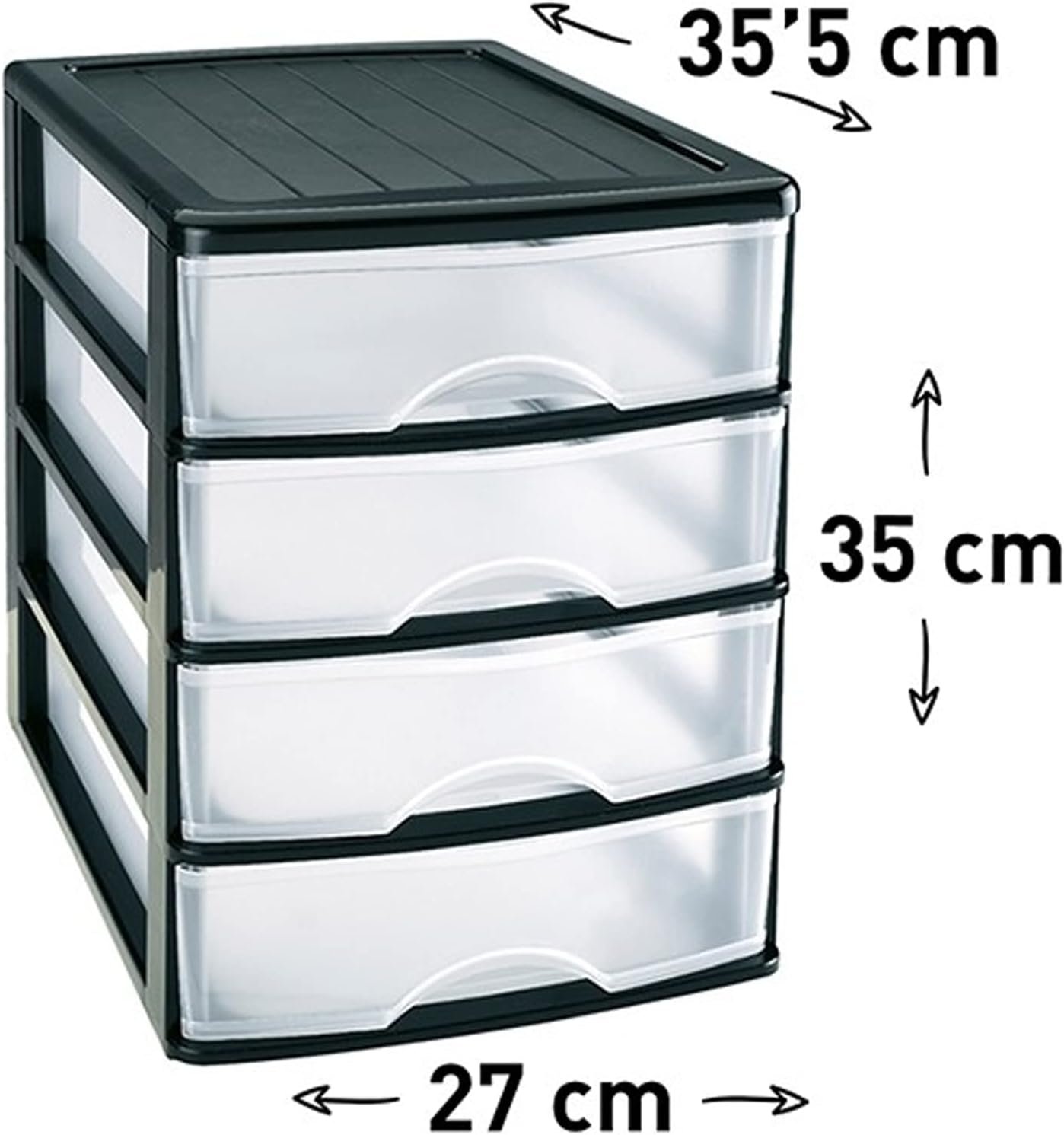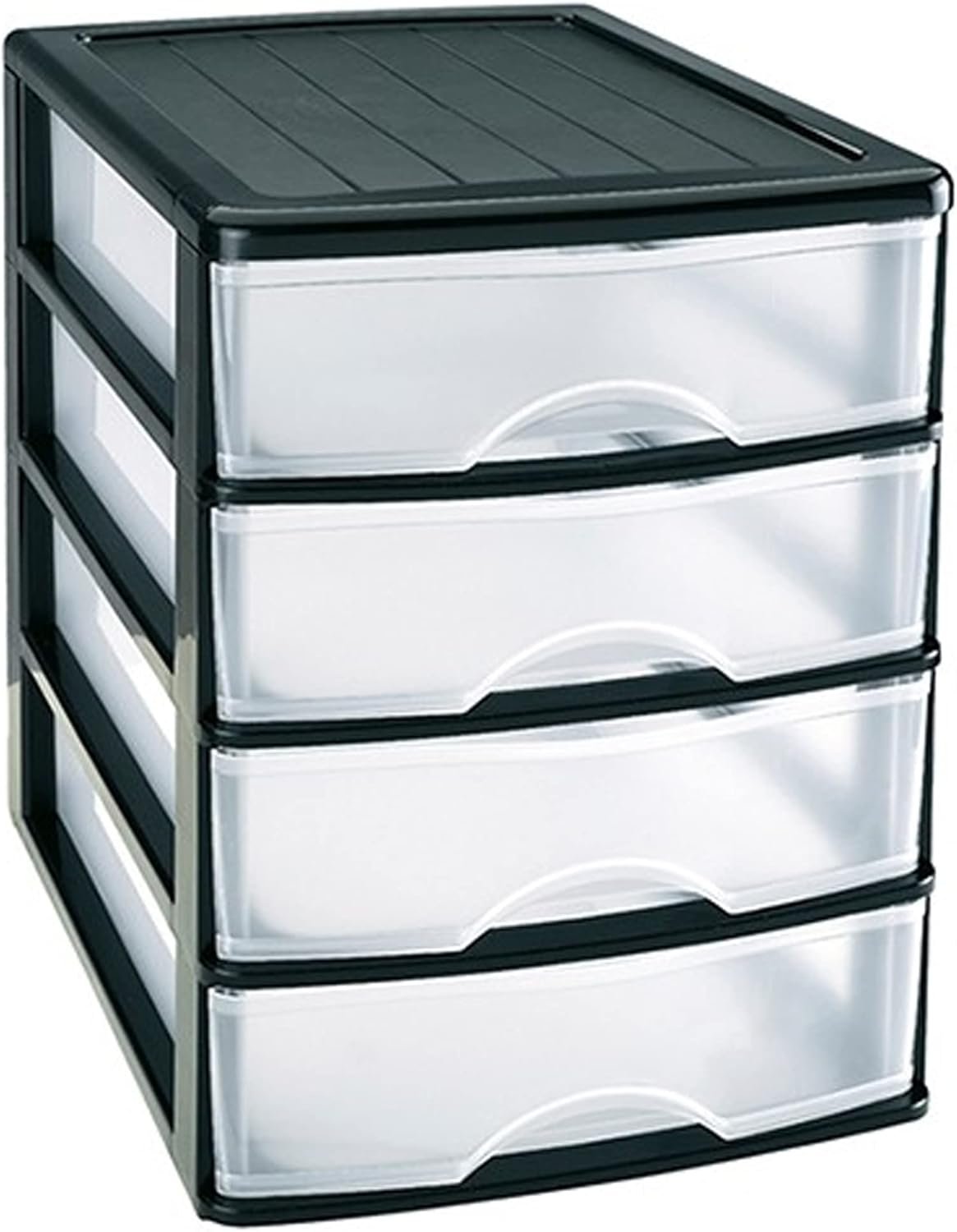 Plastic Desktop Storage Unit with Drawers, Stationary Arts Drawer Desktop Tabletop Organiser Storage Tower Unit for Office Bedroom Garage ((35.5 x 27 x 35cm, Black with 4 Clear Drawers))