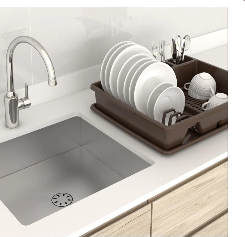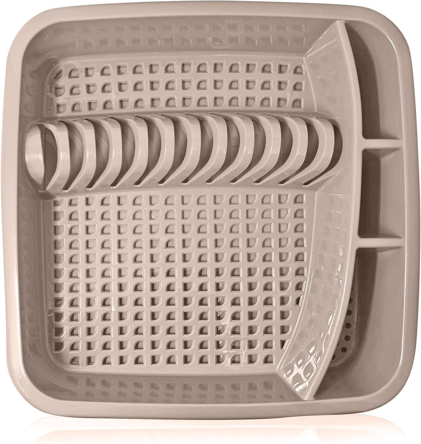 Make dish drying easier and more organized with the Plastific Plastic Dish Drainer in an elegant taupe finish. Designed to fit neatly by your kitchen sink, this multifunctional drainer holds plates, cutlery, cups, and utensils while allowing excess water to drain efficiently.