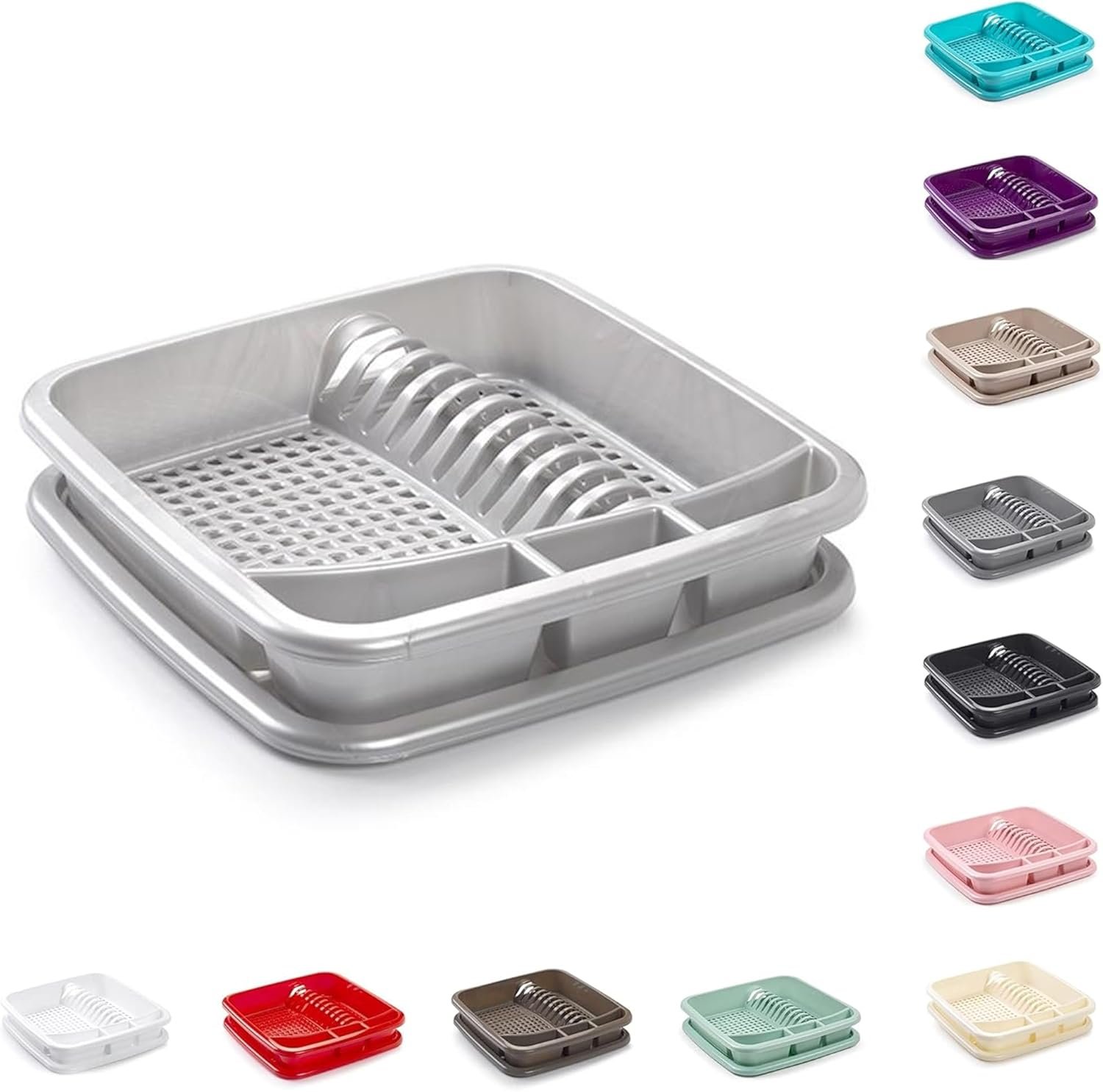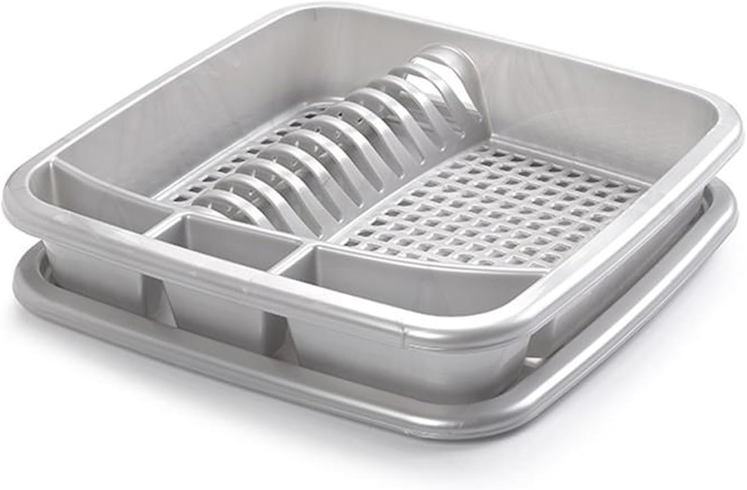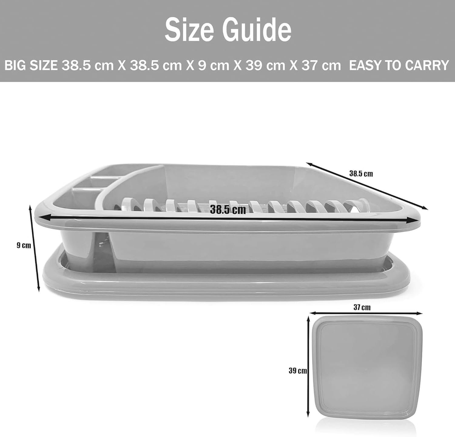 plastific Plastic Dish Drainer Plate Cutlery Rack Kitchen Sink Utensil Rust-Proof Kitchen Draining Cup Holder Cutlery Rack Cutlery and Utensils Holder (39 x 39 x 7.5cm) (Silver)