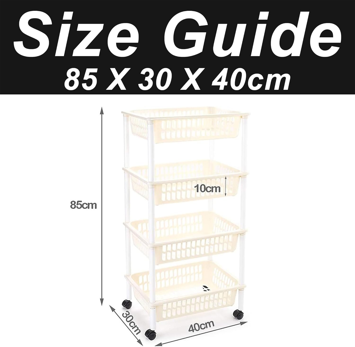 - Large Capacity & Flexible – The 4-tier storage trolley cart is ideal for making the most of limited space at home. This movable storage cart is perfect for storing items in your closet, bathroom, garage, laundry room, workplace, dorm, libraries, or in the space between your washer and dryer. Storage and transportation are simple.
