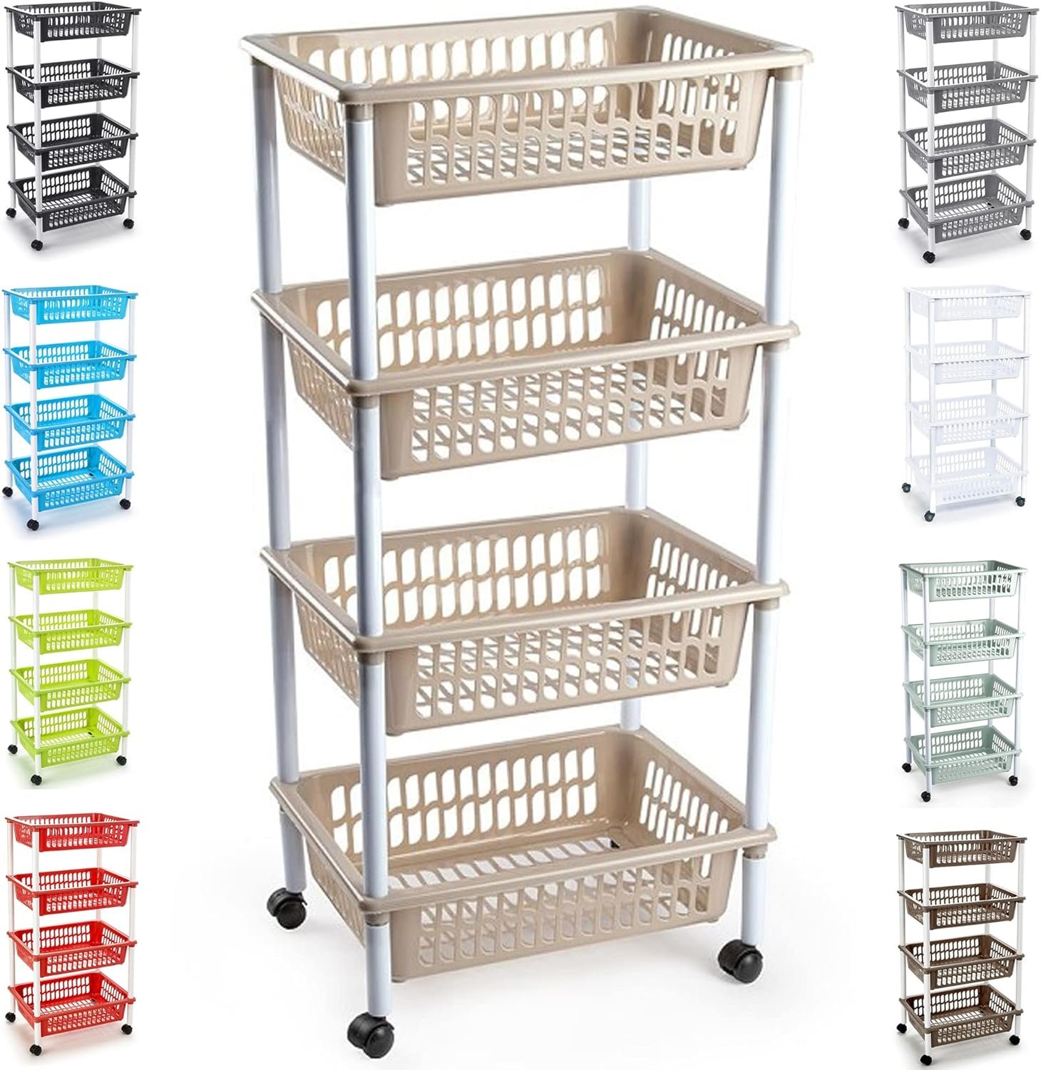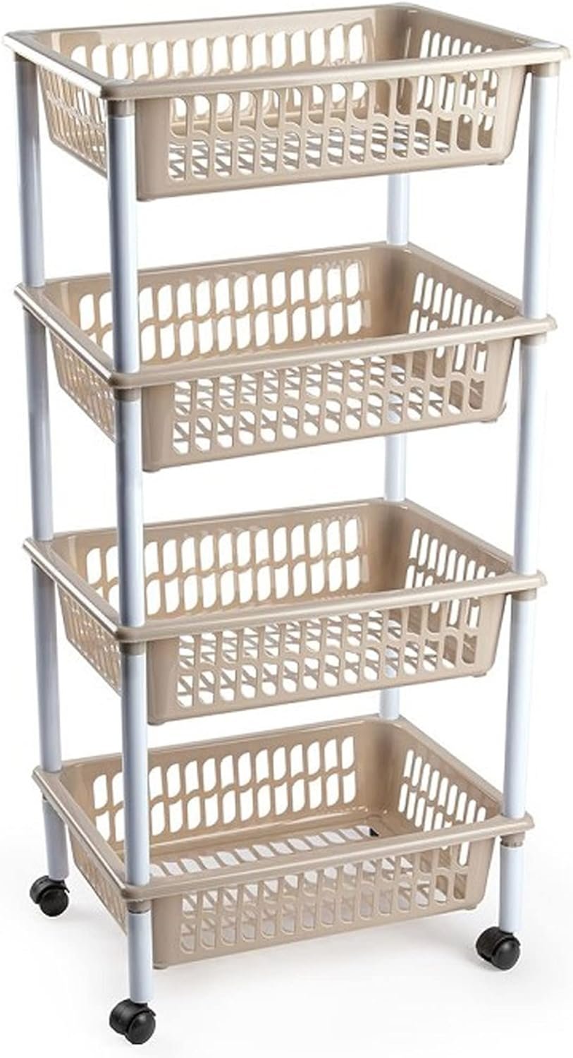 plastific Plastic Storage Trolley Unit with Wheels Utility Kitchen Cart Vegetable Rack Fruit Basket Corner Shelf for Kitchen Bedroom Bathroom Living Room Office (4 – Tier – Taupe)