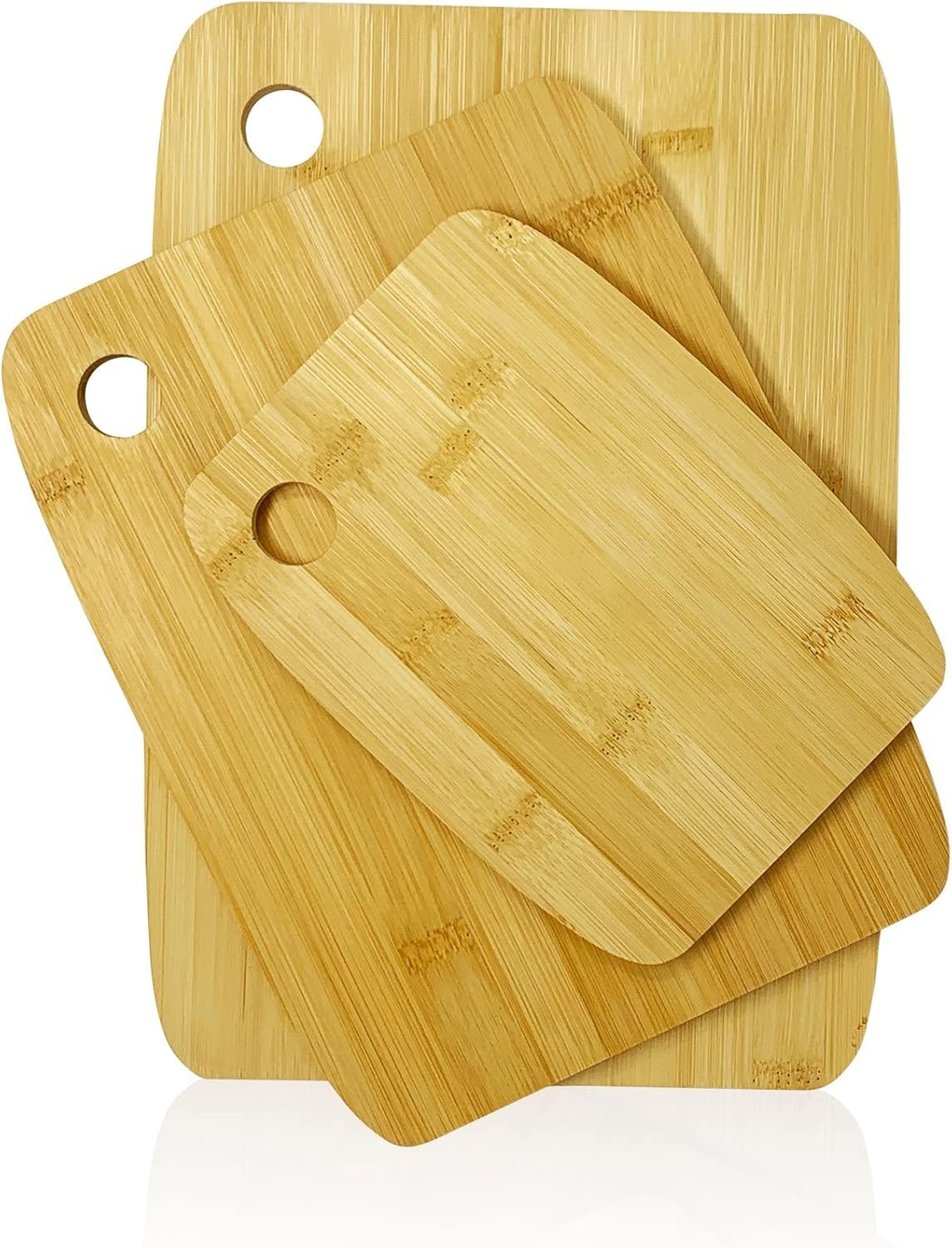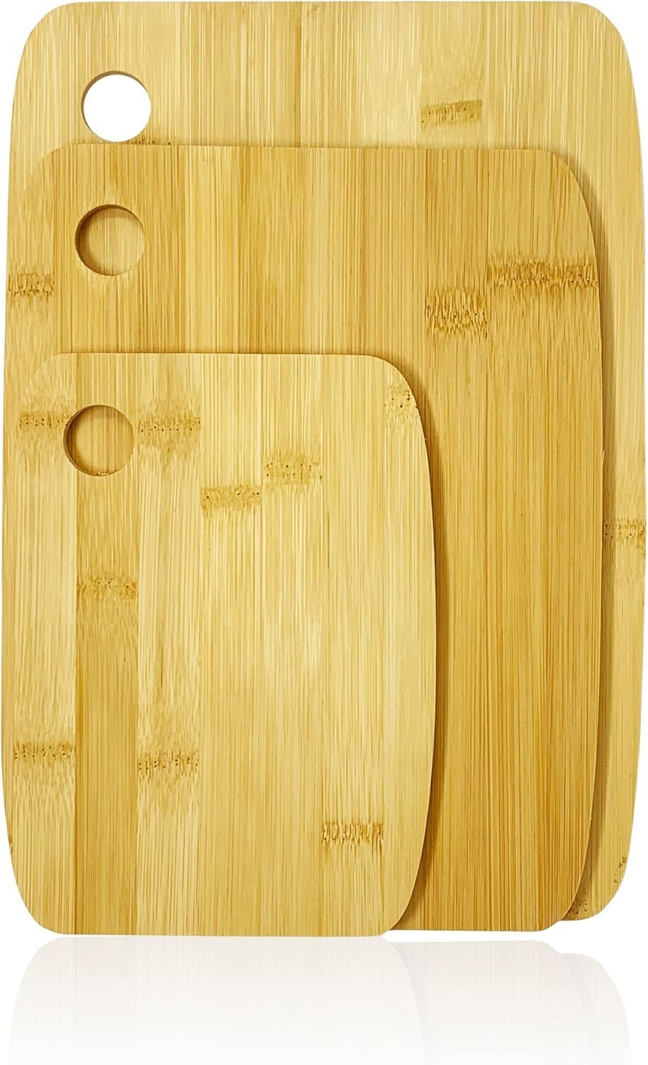 Upgrade your kitchen with this eco-friendly Set of 3 Natural Bamboo Chopping Boards. Crafted from durable, sustainable bamboo, these boards are perfect for slicing vegetables, cutting meat, and serving cheese or snacks. Each board comes in a different size to suit all your food prep needs while being gentle on knives and easy to clean.