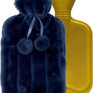 Stylish 2 Litre Hot Water Bottle with Dark Blue Faux Fur Cover – Luxury Plush Heat Bottle for Cold Nights & Body Pain Relief